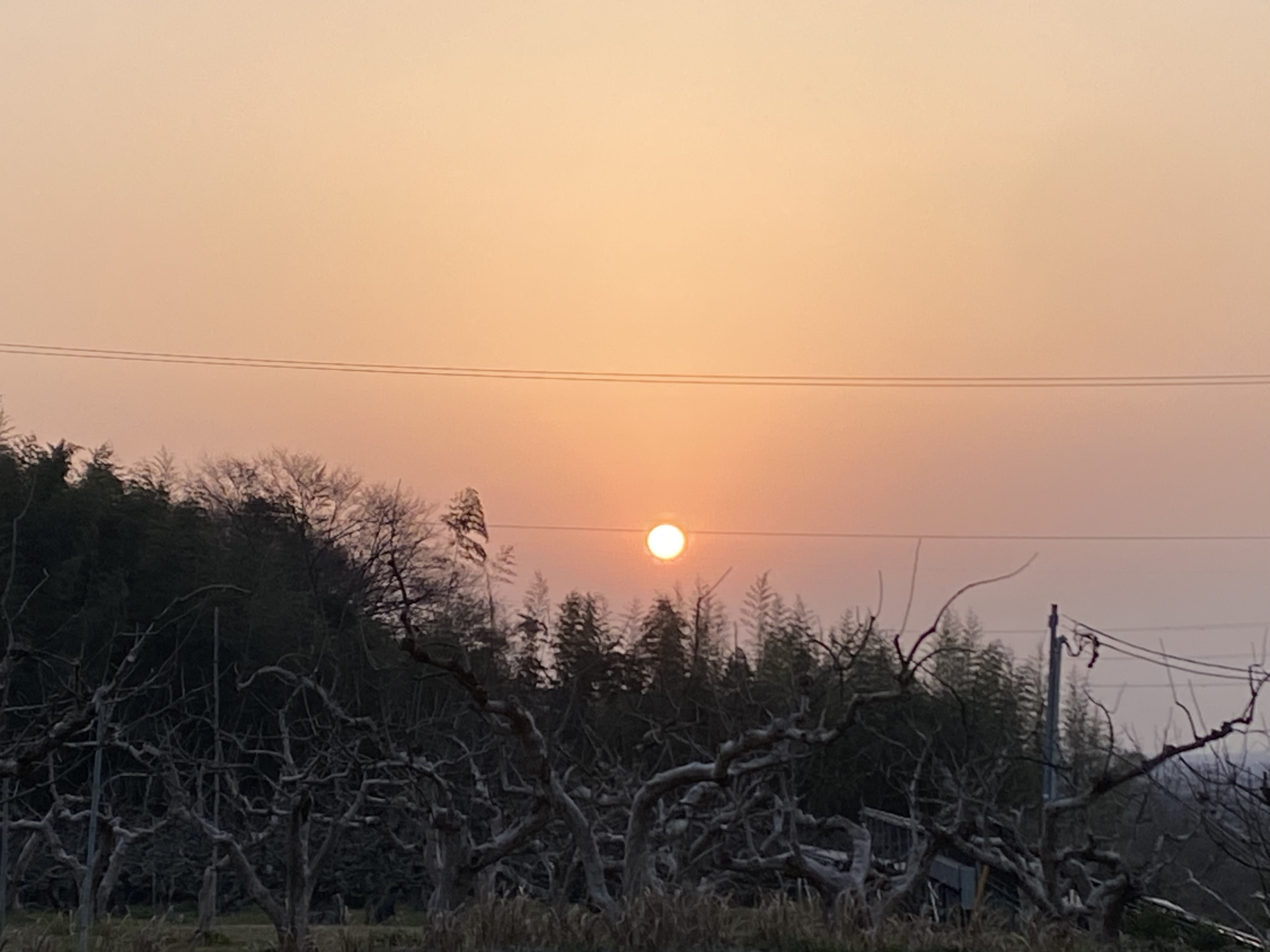 朝焼け 寝坊しました。靄がかかった朝焼けですが目がしょぼしょぼします。
