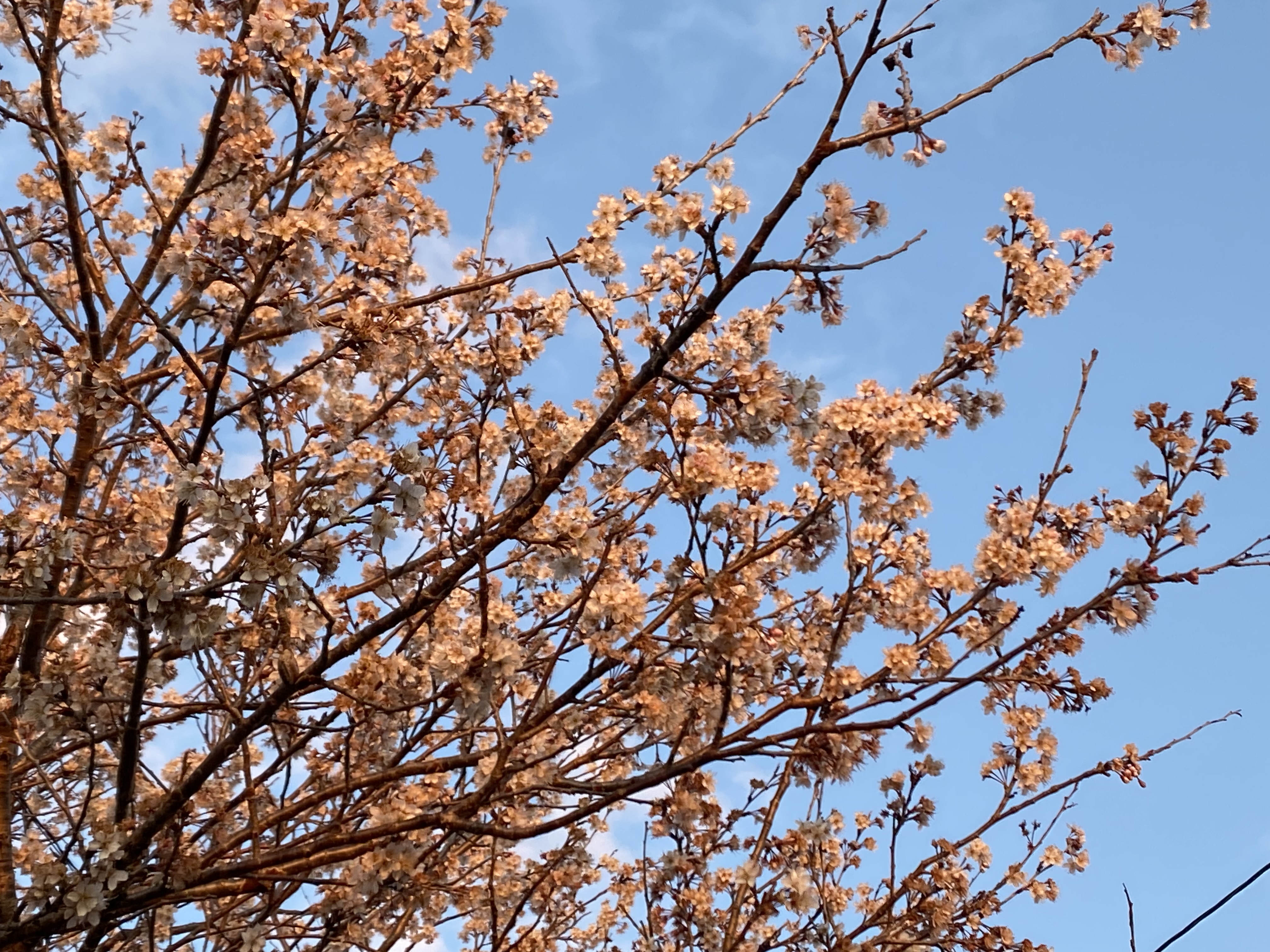朝日に 照らされるさくらんぼの花